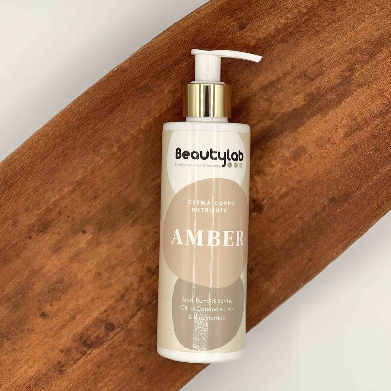 La Crema Corpo “Amber” è un’emulsione idratante ed elasticizzante, dalla texture leggera e di facile assorbimento. Contiene Burro di karité, Vitamina E, olio ed estratto di Canapa, olio di Lino, dalle proprietà emollienti e nutrienti. Arricchisce la formula un particolare complesso zuccherino di Mono e Oligosaccaridi dalle spiccate proprietà idratanti.